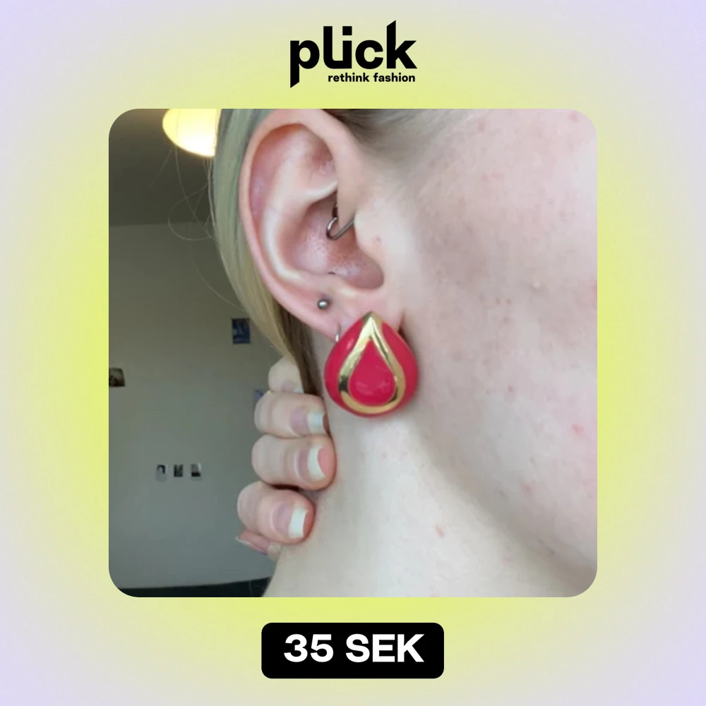 Rosa/röda och guldiga örhängen. Bra skick. Något tunga.