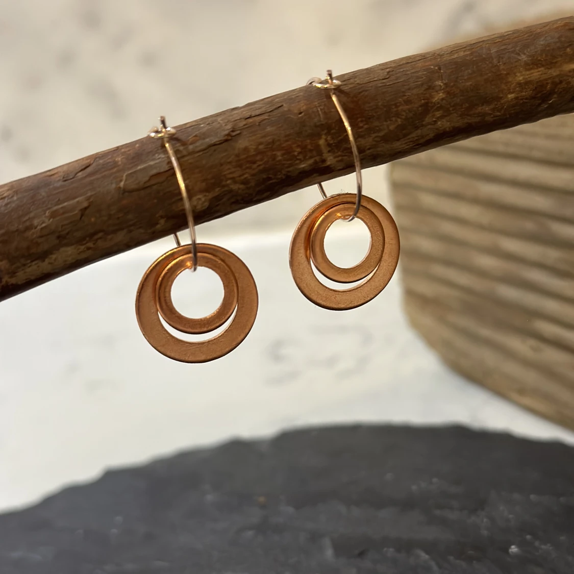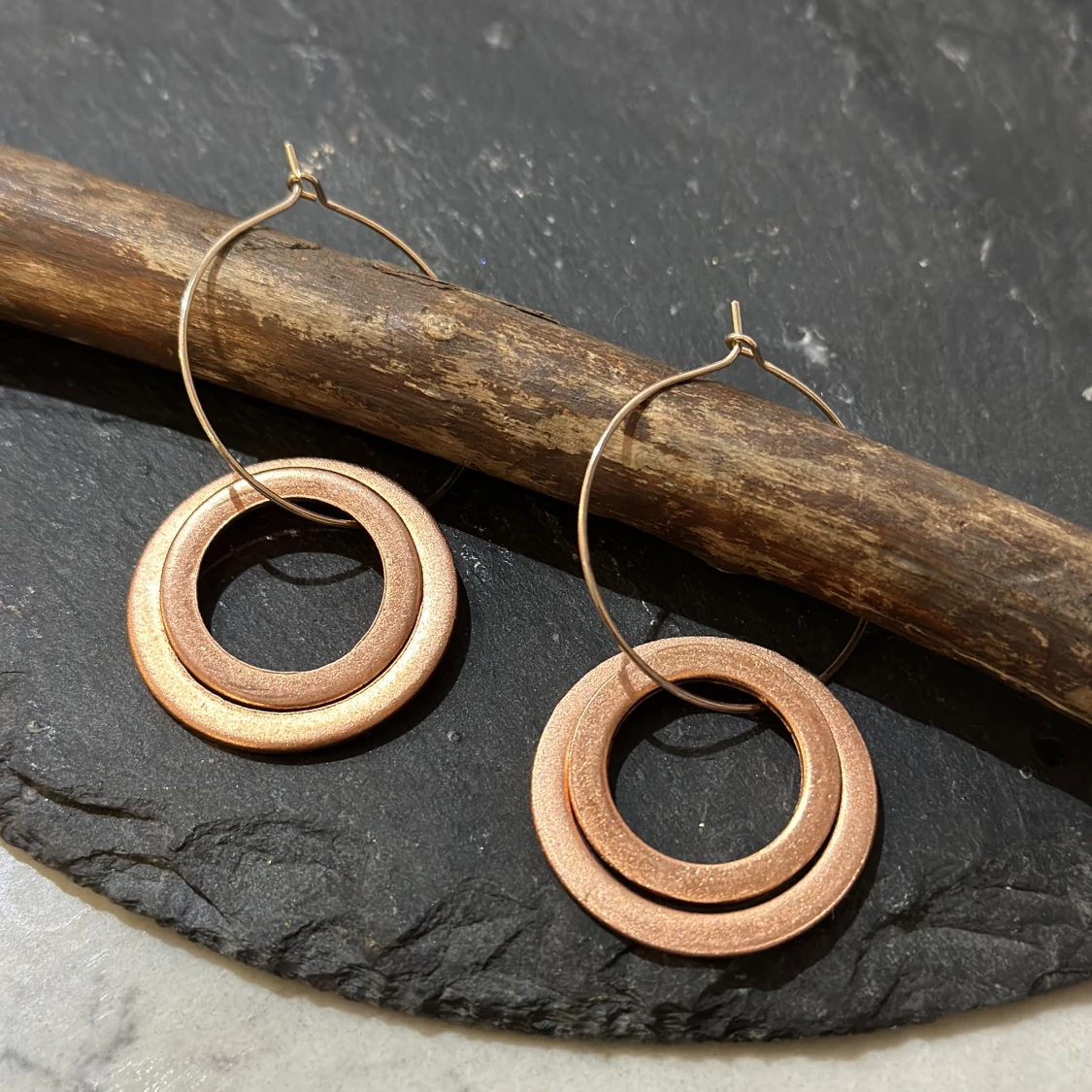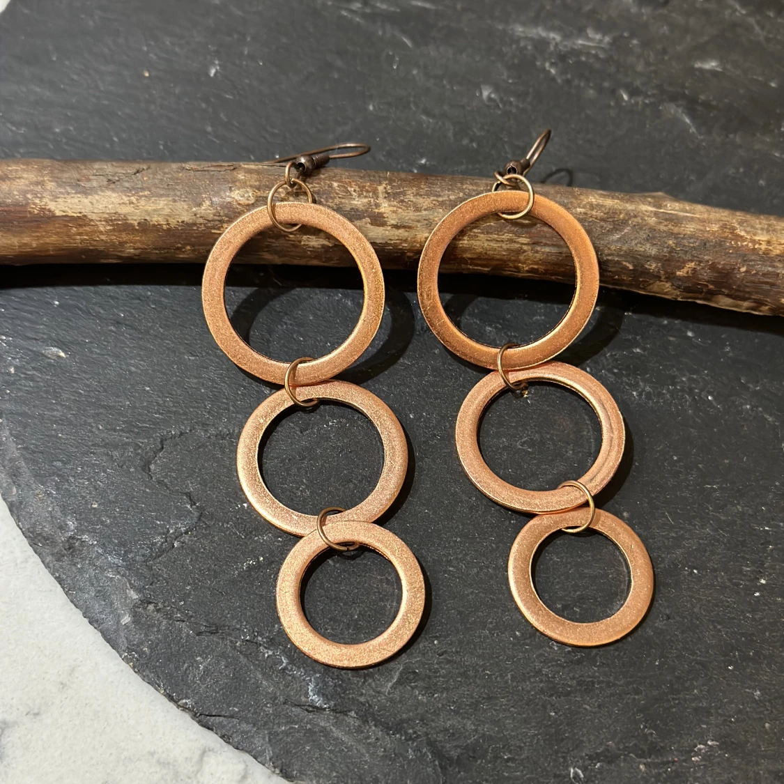 Handgjorda örhängen i koppar: 1: Gertrud 5 cm med 2 större ringar, 350 kr 2: Gertrud 3 cm med 2 mindre ringar, 350 kr 3: Astrid 9 cm med 3 ringar, 350 kr Inredning och smycken i koppar: www.beyondcopper.se