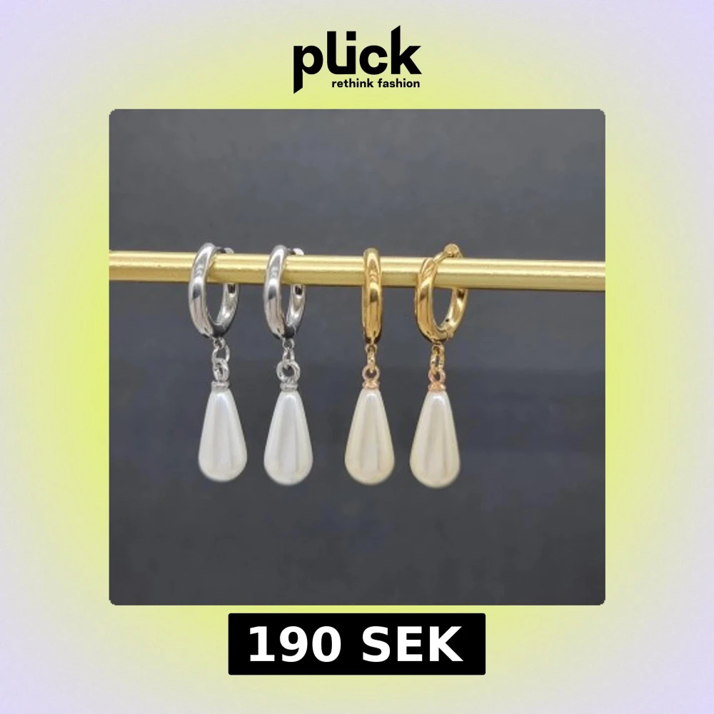 Snygga örhängen med droppformad pärla. Säljs i par i silver och guldfär. Ett par örhängen kostar-190kr.Längd-3,5cm