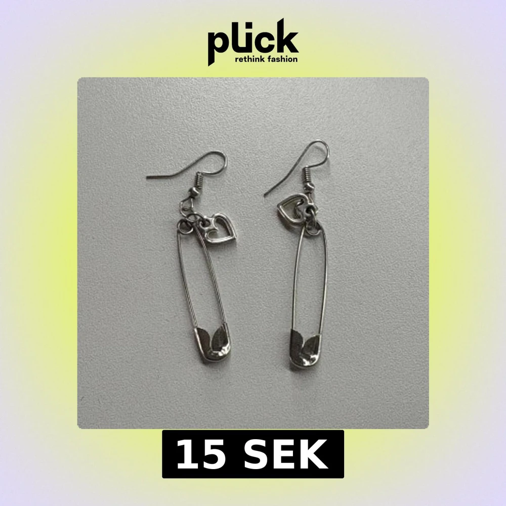 Unika silvriga örhängen formade som säkerhetsnålar med en liten hjärtberlock upptill. Perfekt accessoar för dig som gillar edgy och lekfull stil. Lätta att bära och ger en cool touch till din look.