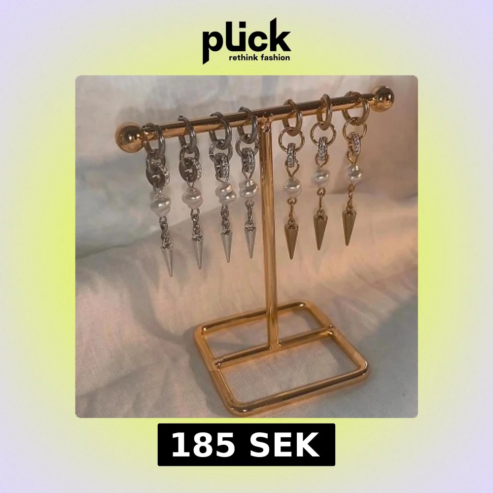 Säljer trendiga örhängen i både silver- och guldfärg med gnistrande stenar, vita pärlor och coola konformade spikes. Perfekt accessoar för dig som vill sticka ut med en edgy men ändå elegant look. Säljs i set ett par