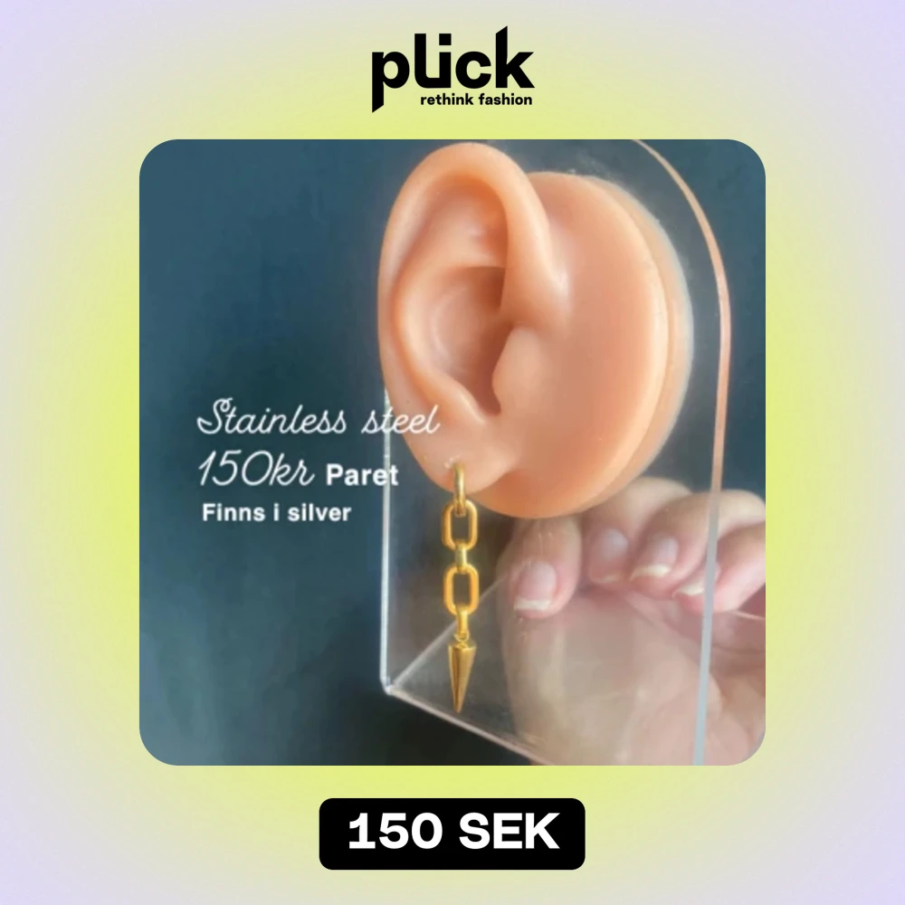 Örhängen med halsband  - Stilrena örhängen och halsband inspirerade av Maria Nilsdotter. Material-rostfritt stål. Örhängen längd-3,7cm, halsband längd-40cm. ☝️Vid köp ingår två extra berlocker som kan bytas ut, då själva hänget är ömtåligt och känsligt för stötar.