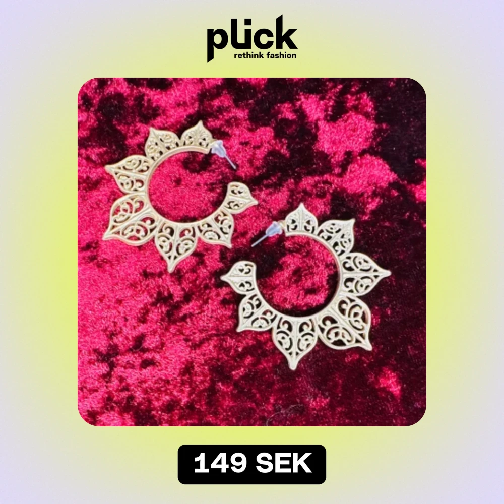 Så läckra örhängen i form av solstrålar. Ovanliga och uppseendeväckande. Längd ca 5 cm. Bredd ca 5 cm. Gummistoppar ingår. Nya och oanvända. En fin gåva till dig själv eller solstrålen i ditt liv.
