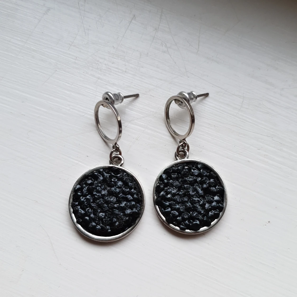 Örhängen med någon svart kristall i, antagligen inte en riktigt, men jag har dålig koll. Skriv om du har frågor 💕