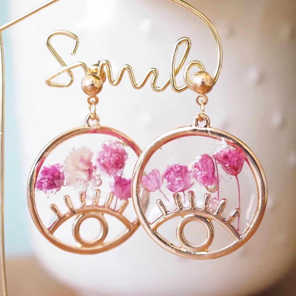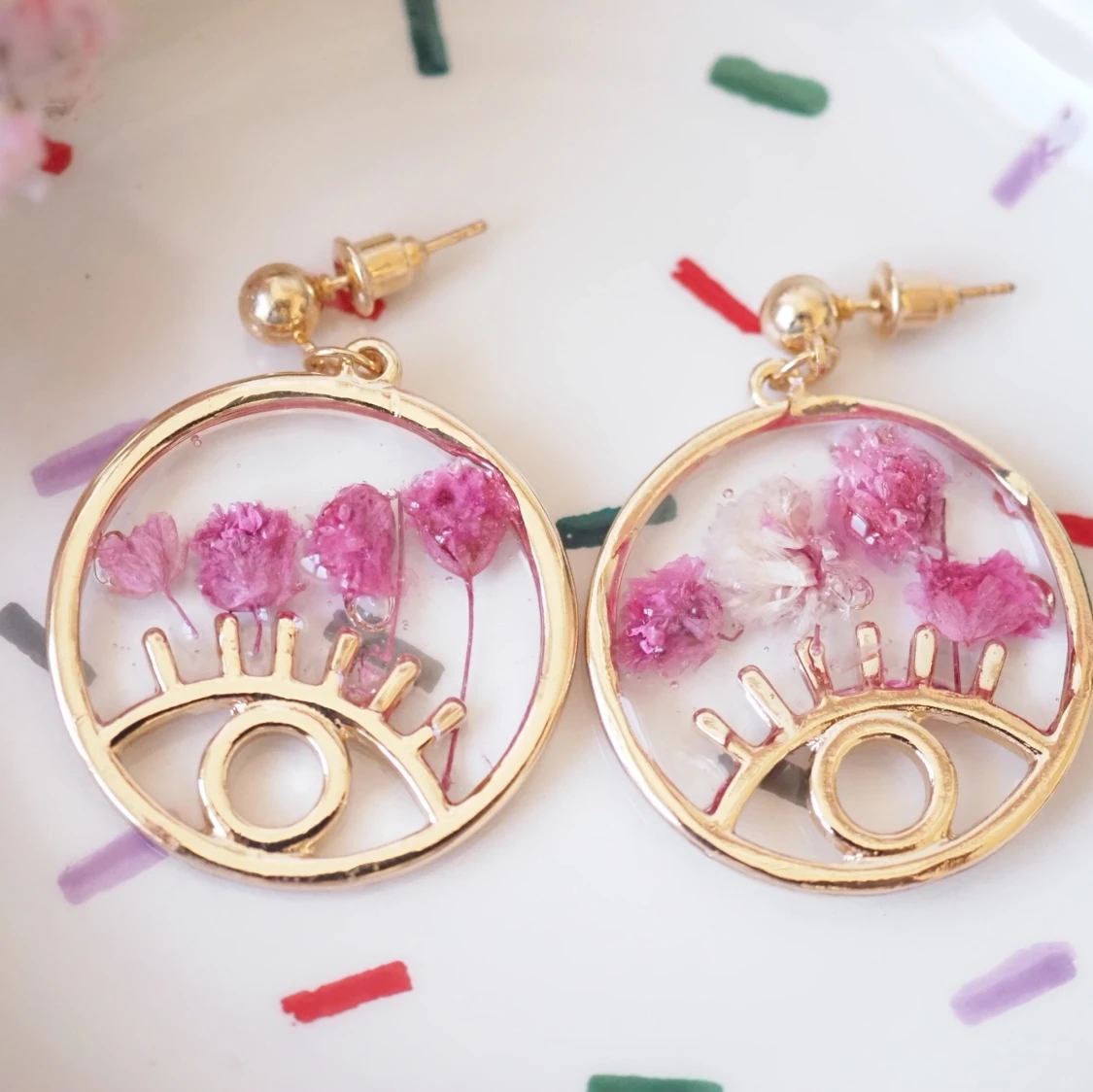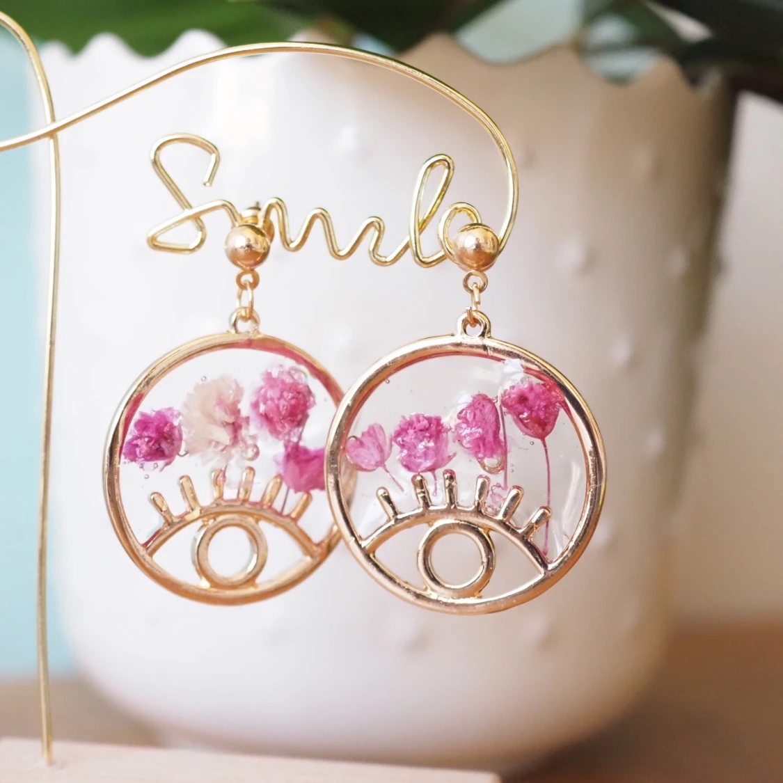I collected this super cute flower during summer - spring 2021 in Sweden. I carefully pressed on wooden flower press for a week. I colored a dried flowers with alcohol inks. Then I gently embed them with uv-resin. They have slight variances, every piece is unique.