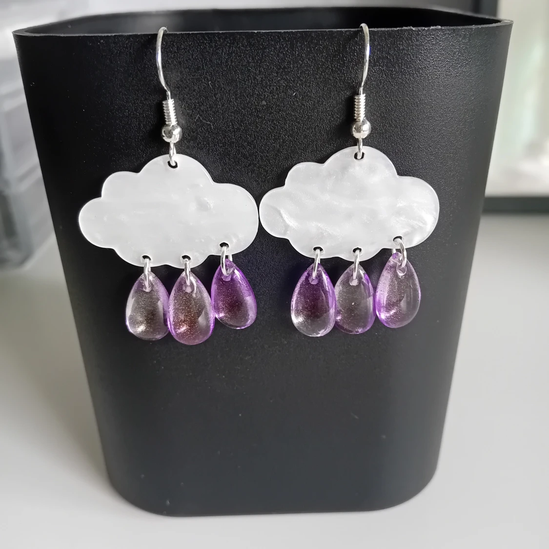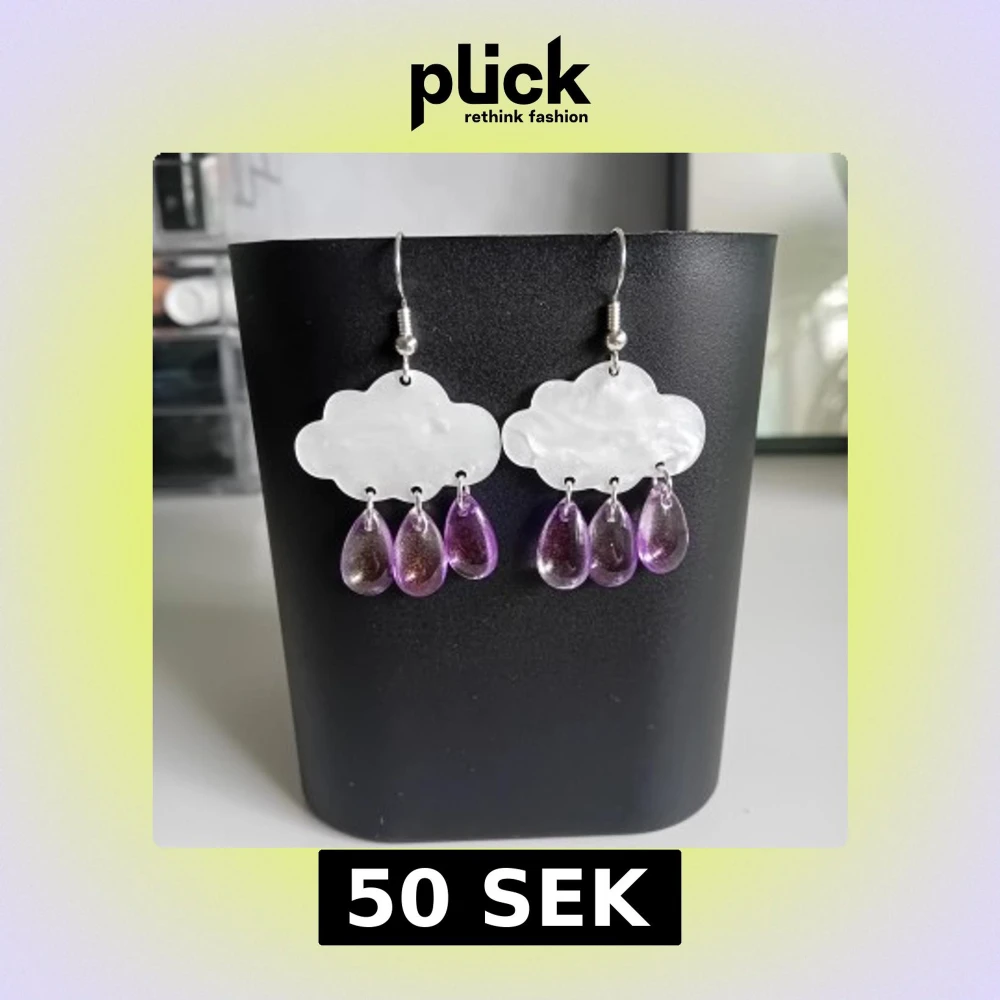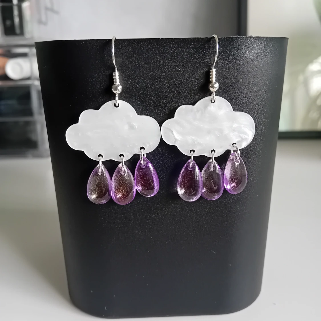 Egentillverkade örhängen droppen går i transparent lila och guldskimmer. Öronkroken är nickelsäker och aldrig använda. Längd ca 4cm