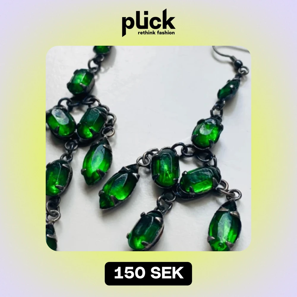 Vintage örhängen med gröna rhinestones i troligtvis glas