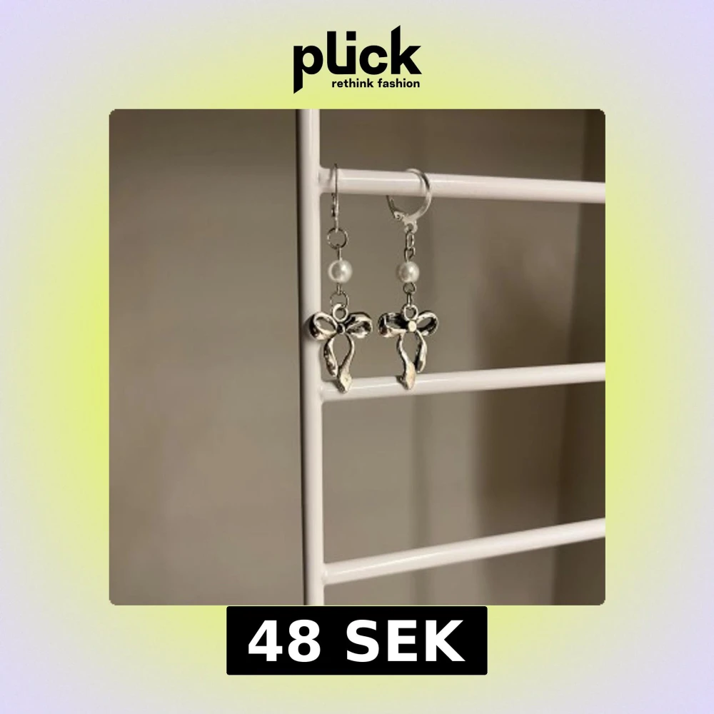 Supersöta hängande örhängen i silverfärg med en liten pärla och en glansig rosett som detalj. Perfekta för att ge din look en gullig och trendig touch. Passar dig som gillar unika accessoarer med lite extra charm. Handgjort