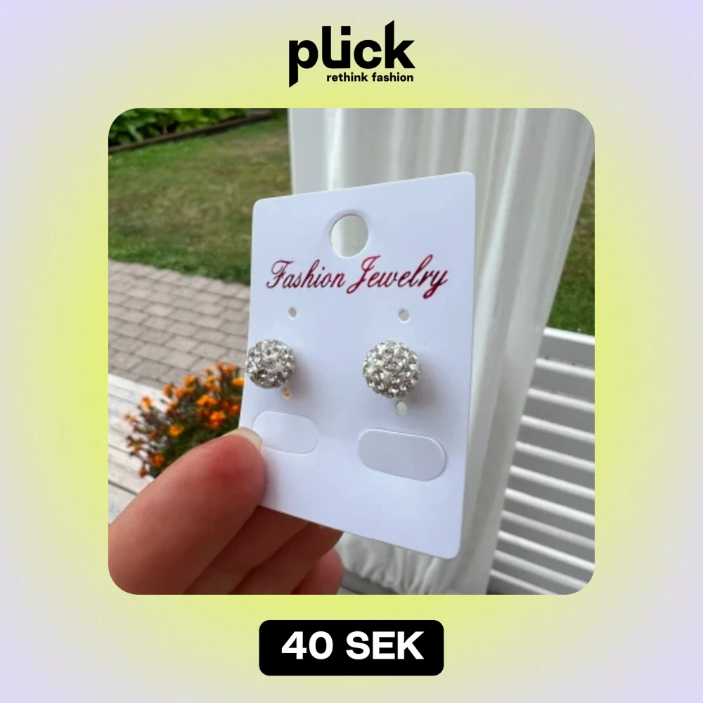 Små runda glittriga örhängen i silver. Sälja pga att de inte kommit till användning 💞 (Den vita plastbrickan de sitter på följer tyvärr inte med! De packas i silkespapper + ytteremballage 🥰) Diameter: ca 1 cm