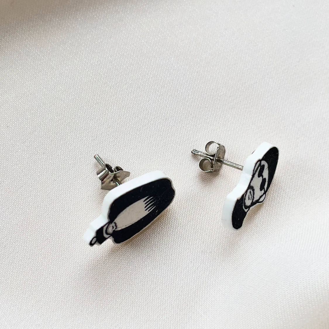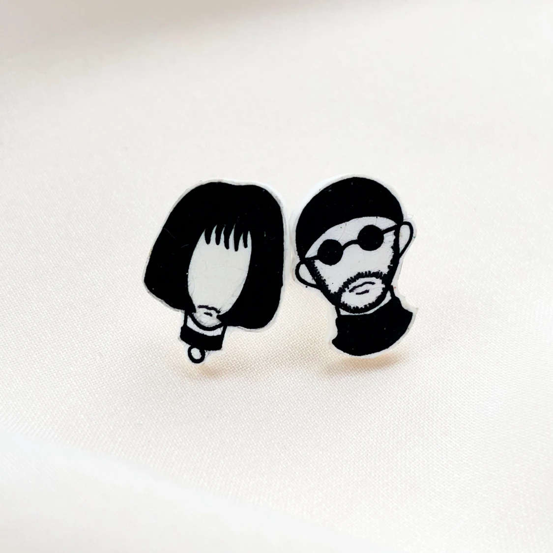 Handgjorda örhängen föreställande Léon och Mathilda från filmen Léon the professional