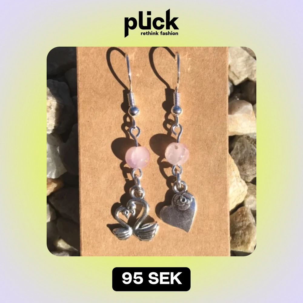 Vackra örhängen av rosa glaspärlor och silver-charms.