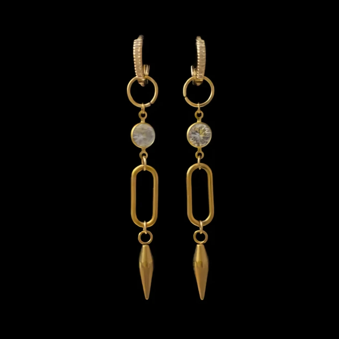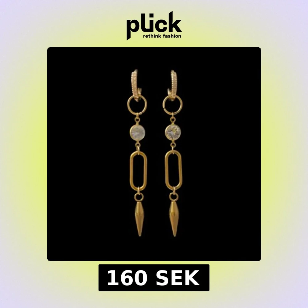 Priset avser ett par örhängen och det finns även I silverfärg. • Material: Guldpläterat rostfritt stål • Längd: ca 68mm • Nickelfria och handgjorda