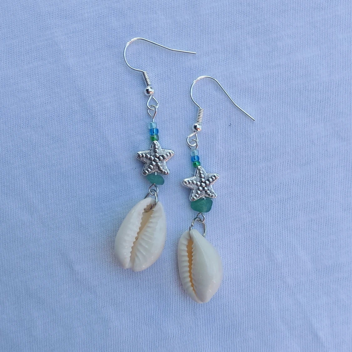 Silver örhängen med snäcka, sjöstjärna och blågröna pärlor🌊🌙 Kan skickas eller hämtas, vi står ej för frakt😇