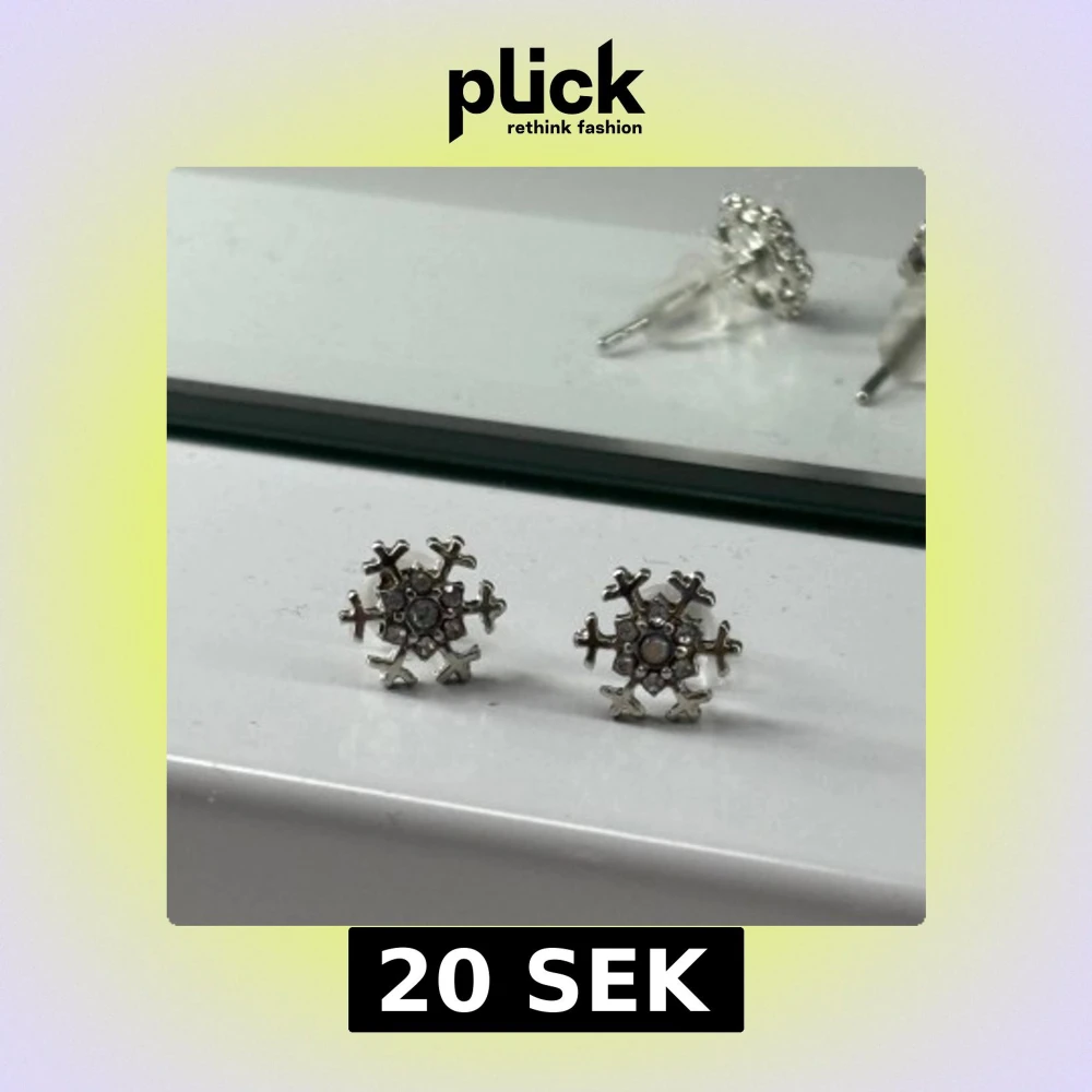 Supersöta örhängen i form av snöflingor i silverfärg med små glittrande stenar i mitten. Aldrig använda!