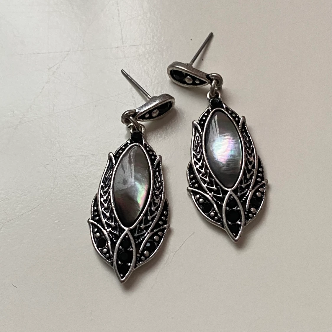 Vackert skimrande örhängen med abalone och svarta diamanter Okänt material