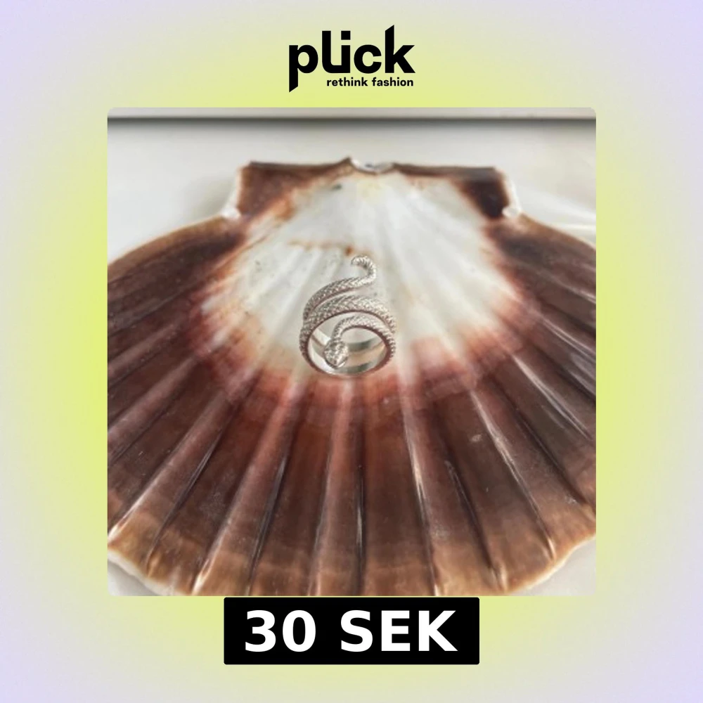 Unik ring i form av en slingrande orm, tillverkad i silvrig metall med detaljerat mönster som liknar ormskinn. Ringen är perfekt för dig som vill sticka ut med en edgy accessoar. Ringen är ca 16,1 mm.