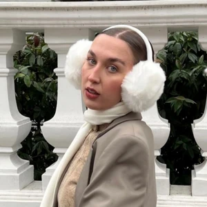 Vita fluffiga öronmuffar (fuskpäls). Aldrig använda