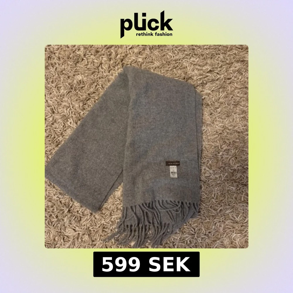 Säljer en stilren grå halsduk från Oscar Jacobson, tillverkad i mjuk ull. Halsduken har klassiska fransar i ändarna och en diskret logotypetikett. Perfekt för att hålla värmen och addera en snygg touch till din outfit.