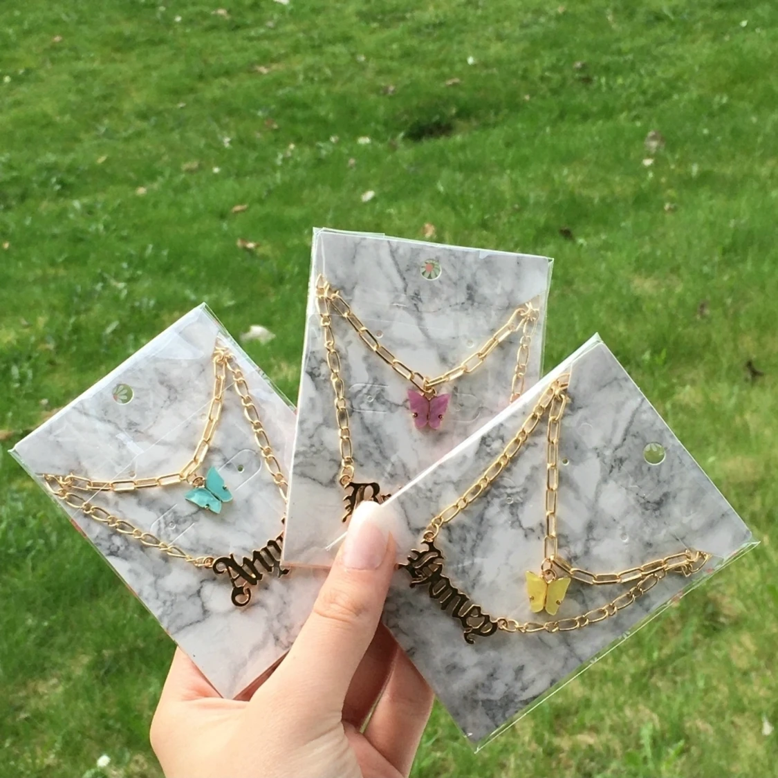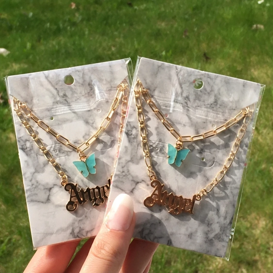 Fjärilshalsband i motivet "angel" som passar perfekt till din sommar outfit. Produkten är helt ny och finns även i rosa och gult i olika motiv (kolla in min profil). Betalning sker via Swish eller PayPal och beställning sker via DM på Instagram eller Plick: @mirah_beauty. 1-3 dagars leverans samt fri frakt.