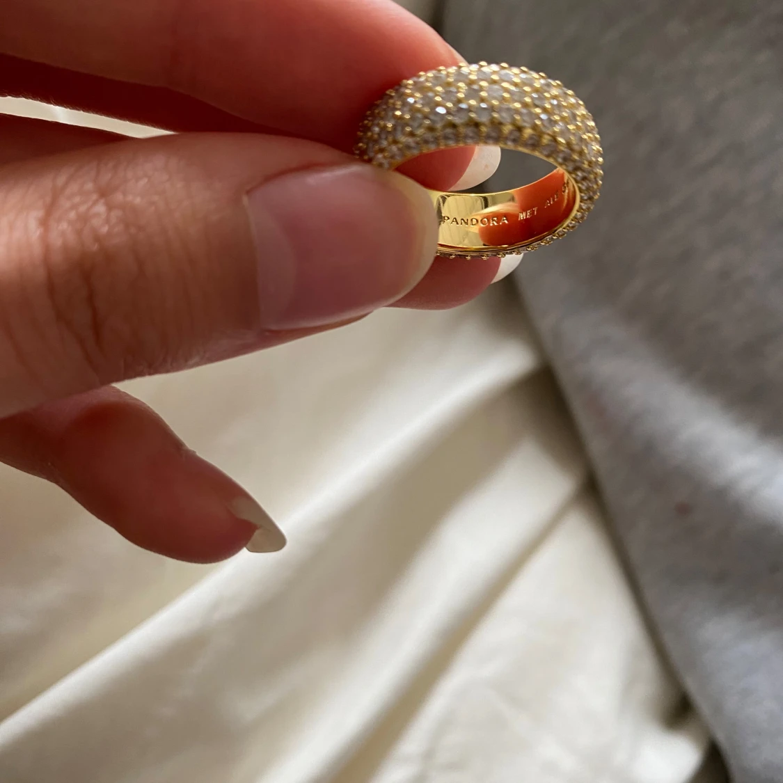 Säljer en snygg guldfärgad ring från Pandora, täckt med glittrande stenar runt hela ringen. Perfekt för dig som vill ha något som sticker ut och glittrar lite extra. Fick den av mitt ex för några dagar sen, gjorde slut idag. Vill sälja alla presenter jag har fått av honom. Inte fast pris