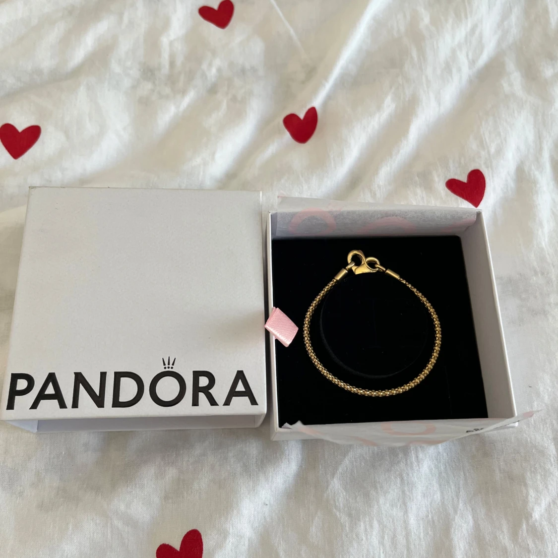 Snyggt strukturerat ormkedjearmband från Pandora med 14 karats guldplätering. Armbandet har en elegant och stilren design med klassiskt lås och levereras i originalask. Perfekt accessoar för att lyfta din look. Orginal pris 2000kr💕