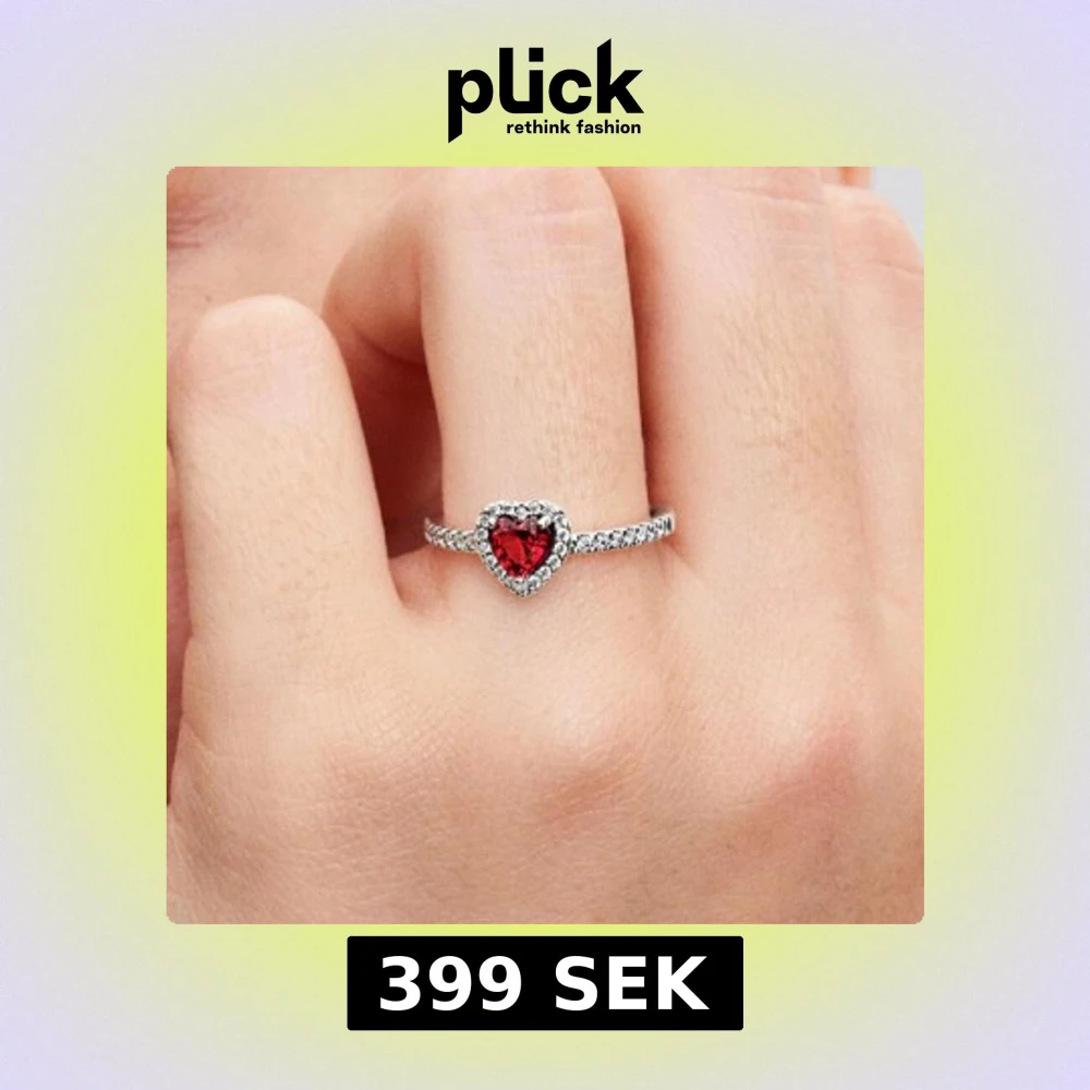 Superfin ring från Pandora i äkta silver med en gnistrande röd hjärtformad sten i mitten, omgiven av små klara stenar längs hela ringen. Perfekt statement-piece med romantisk vibe och snygg detalj till din look.