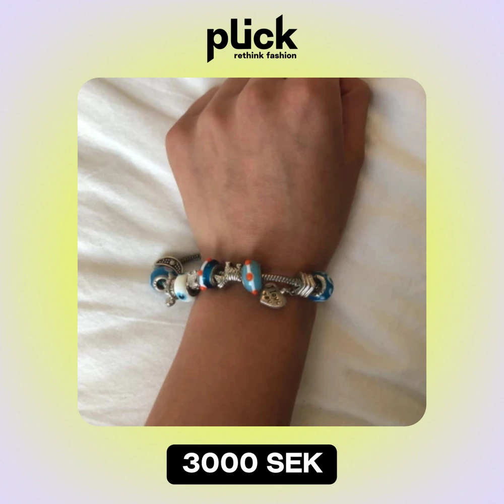 Ganska stor, använd 1 gång, silver smycken med blåa berlocker