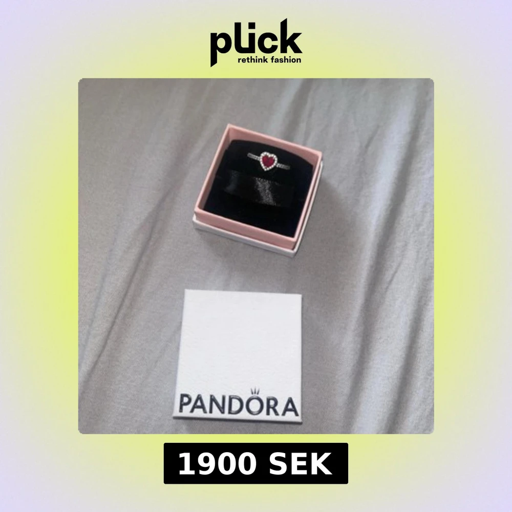 Superfin ring från Pandora i silver med en röd hjärtformad sten i mitten, omgiven av små glittriga stenar. Ringen har en tunn banddesign med extra stenar längs sidorna för extra bling. Perfekt för dig som gillar romantiska detaljer och vill sticka ut.