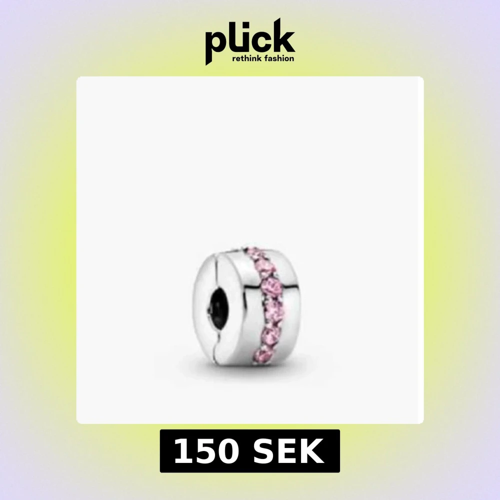 Säljer EN snygg rund stopp grej från Pandora i silverfärg med en rad glittrande rosa stenar runt om. Perfekt att sätta på ditt armband för en extra touch av färg och bling.