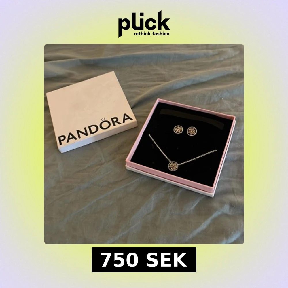 Värda lite över 1000 kr men är använda mycket sällan så sänker till 750 kr för båda tillsammans. Elegant smyckeset från Pandora med ett halsband och matchande örhängen. Båda smyckena har ett vackert cirkulärt hängsmycke med detaljerade mönster. Perfekt för att ge en stilren touch till din look.