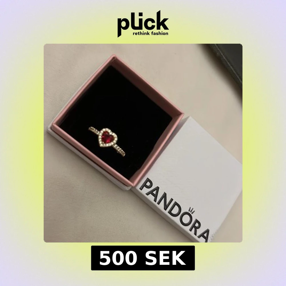 Elegant guldfärgad ring från Pandora med ett rött hjärta i mitten, omgiven av gnistrande stenar. Perfekt för att ge en romantisk touch till din stil. Levereras i originalförpackning.