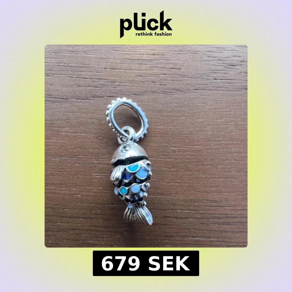 Hängande blå fiskberlock i silver till Pandora armband. Så gott som nytt. Använt färre än 10 gånger. (Armband ingår ej i priset)