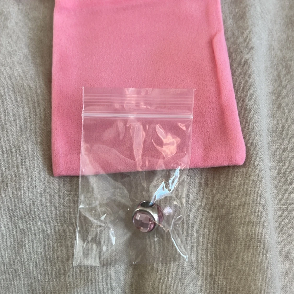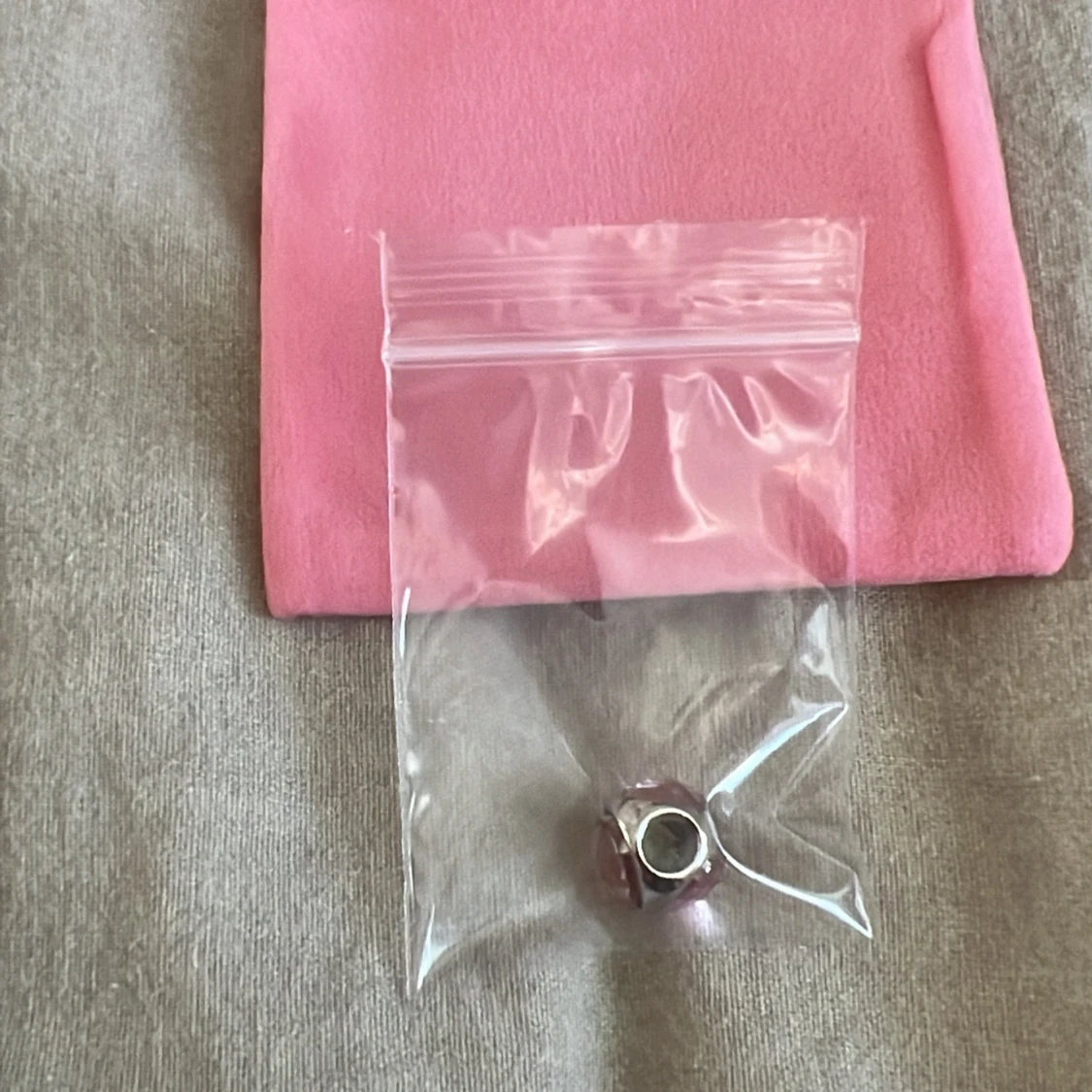 Säljer en snygg Pandora-berlock i silver med en facetterad ljusrosa sten. Perfekt att sätta på ditt armband för en extra touch av färg och stil. Kommer med en rosa påse för förvaring.