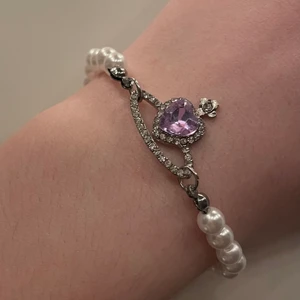 Gulligt armband med pärlor och ett lila diamant hjärta i mitten 🤍