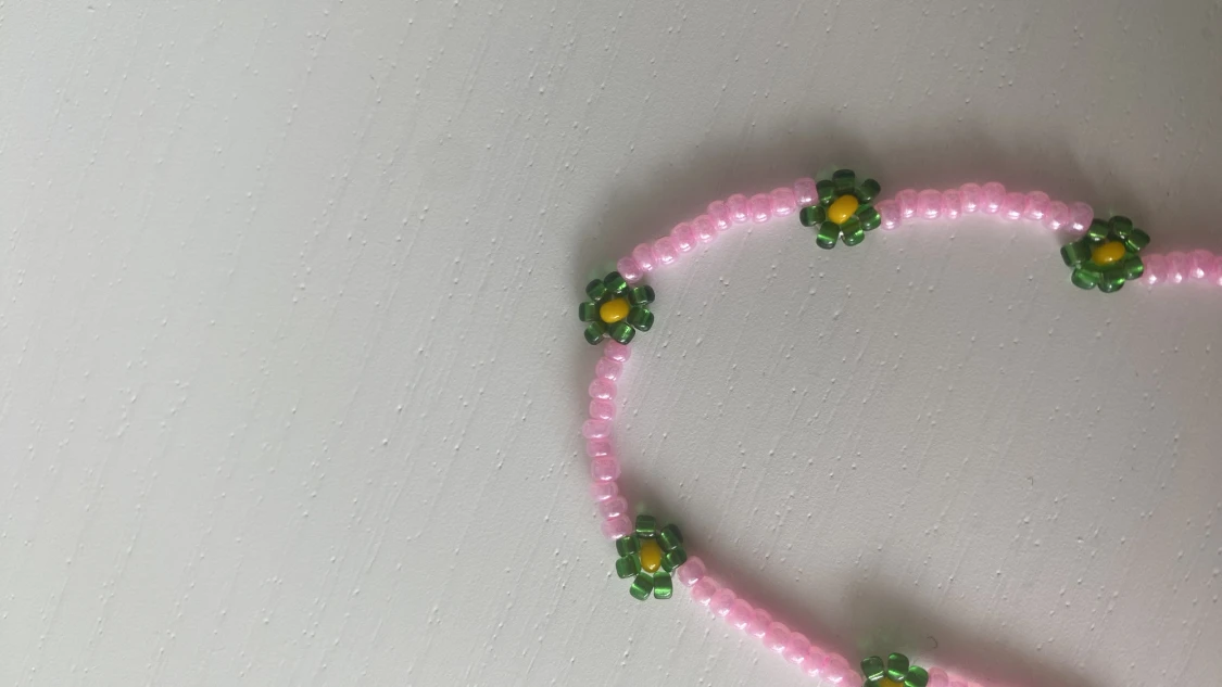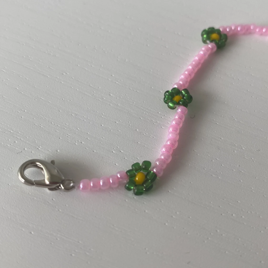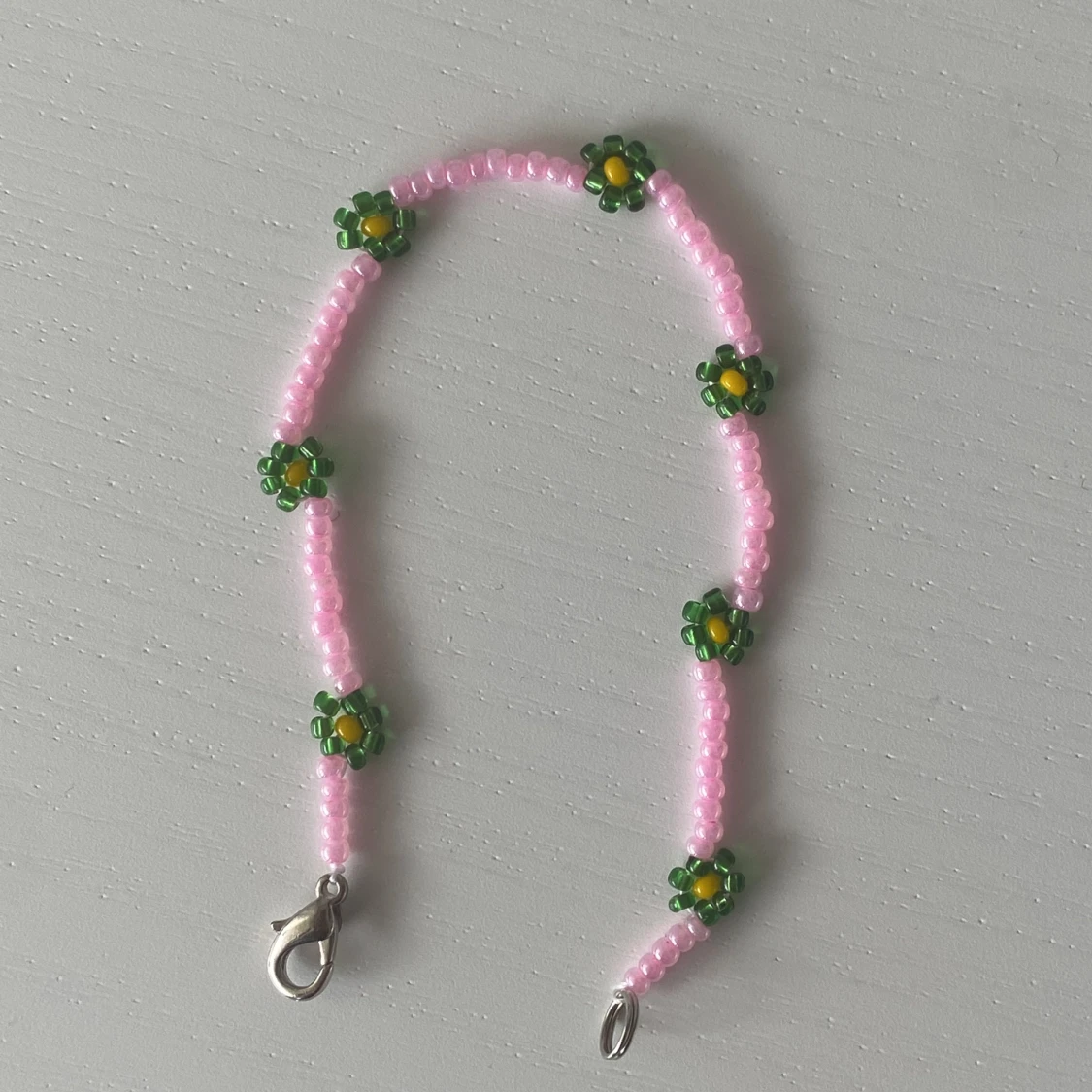 Supergulligt handgjort armband av pärlor med blommor på