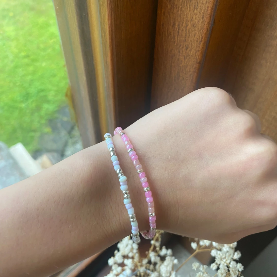 Säljer dessa två handgjorda pärlarmband. De är stretchiga i storleken 💗