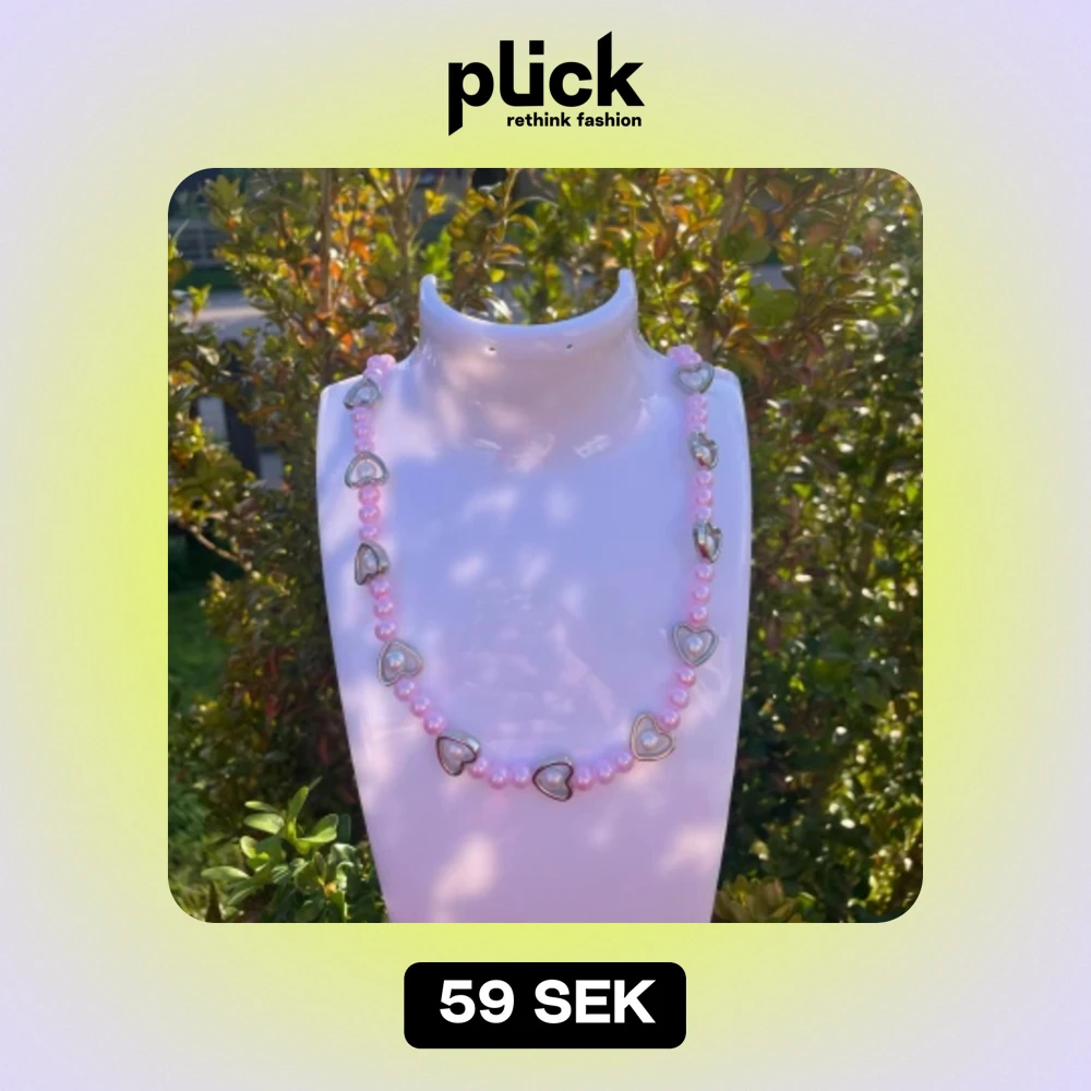 Söt och stilren - vårt rosa pärlhalsband med hjärtdetaljer 🌸🩷