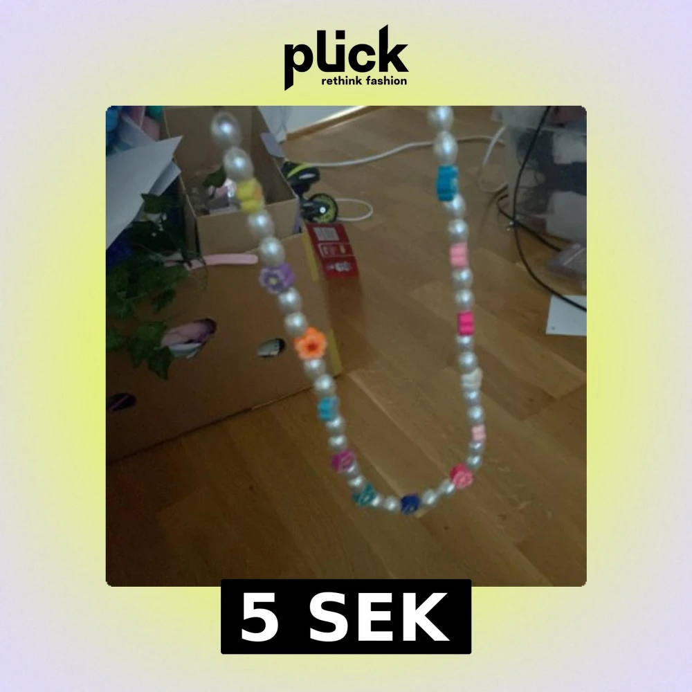 Superfint halsband med vita pärlor och färgglada blommor i olika nyanser. Halsbandet har en lekfull och trendig stil med inslag av rosa, blått, lila, orange och gult. Perfekt accessoar för att liva upp din outfit!