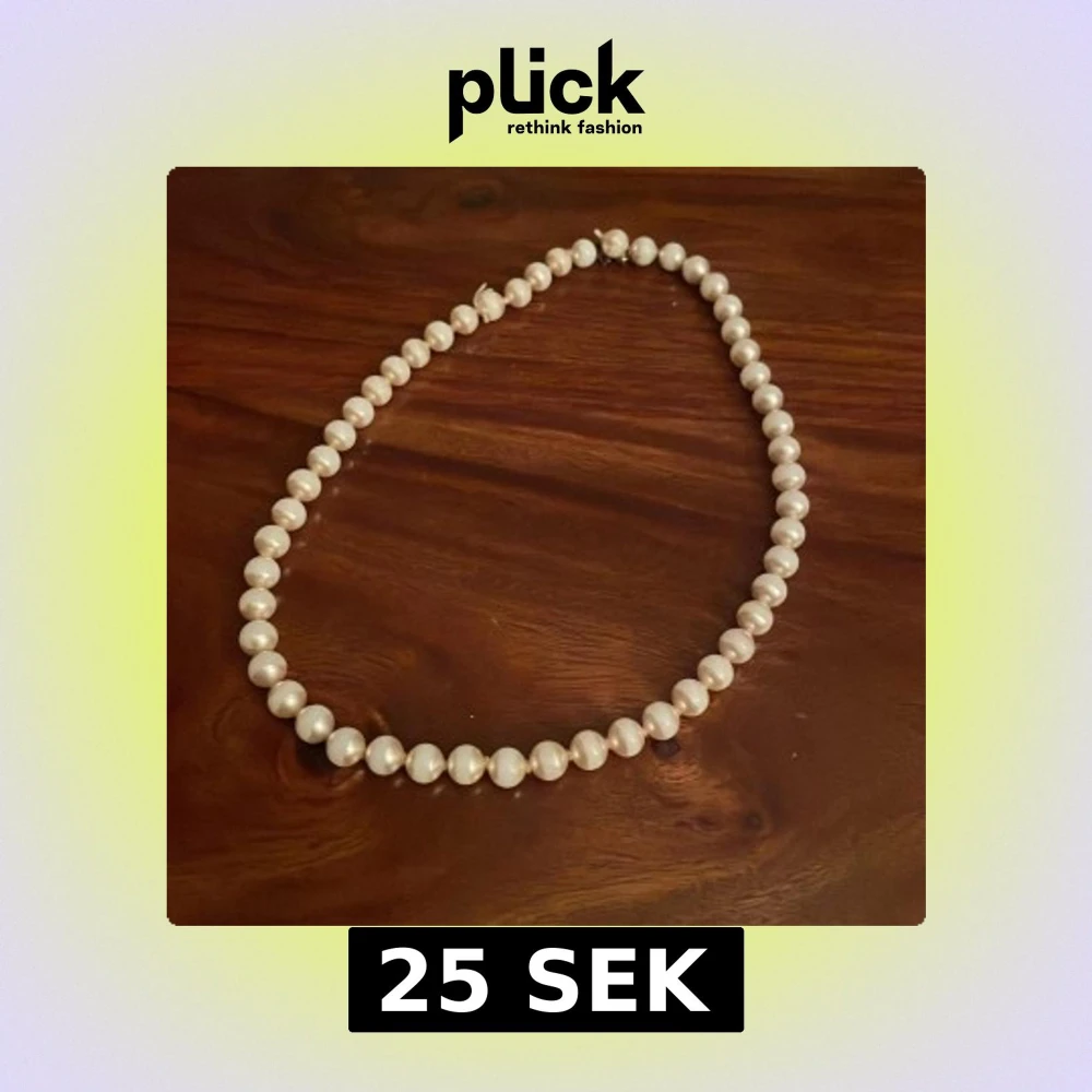 pärlhalsband med vita pärlor. Lite trasig men fixade som ni ser på bild 2