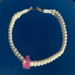 Pärlhalsband med en rosa kanin🥺🥺🥺 Jag gör dessa själv!🍀💐🌿🍃🌺🌷✨🌱