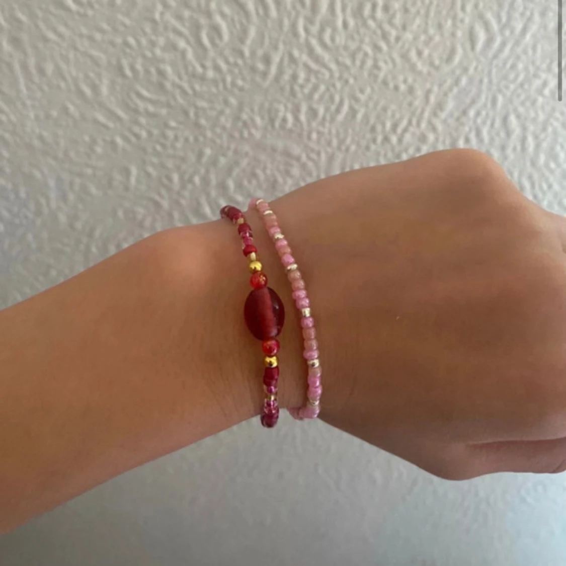 Handgjorda pärlarmband. De är stretchiga i storleken
