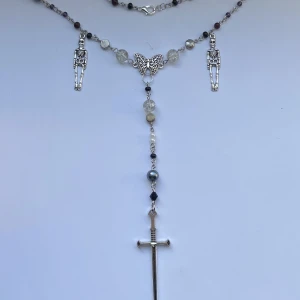 Rosary inspirerat Gothic halsband! Pärlor i vinröd, svart, lila, grå och genomskinlig+skelett