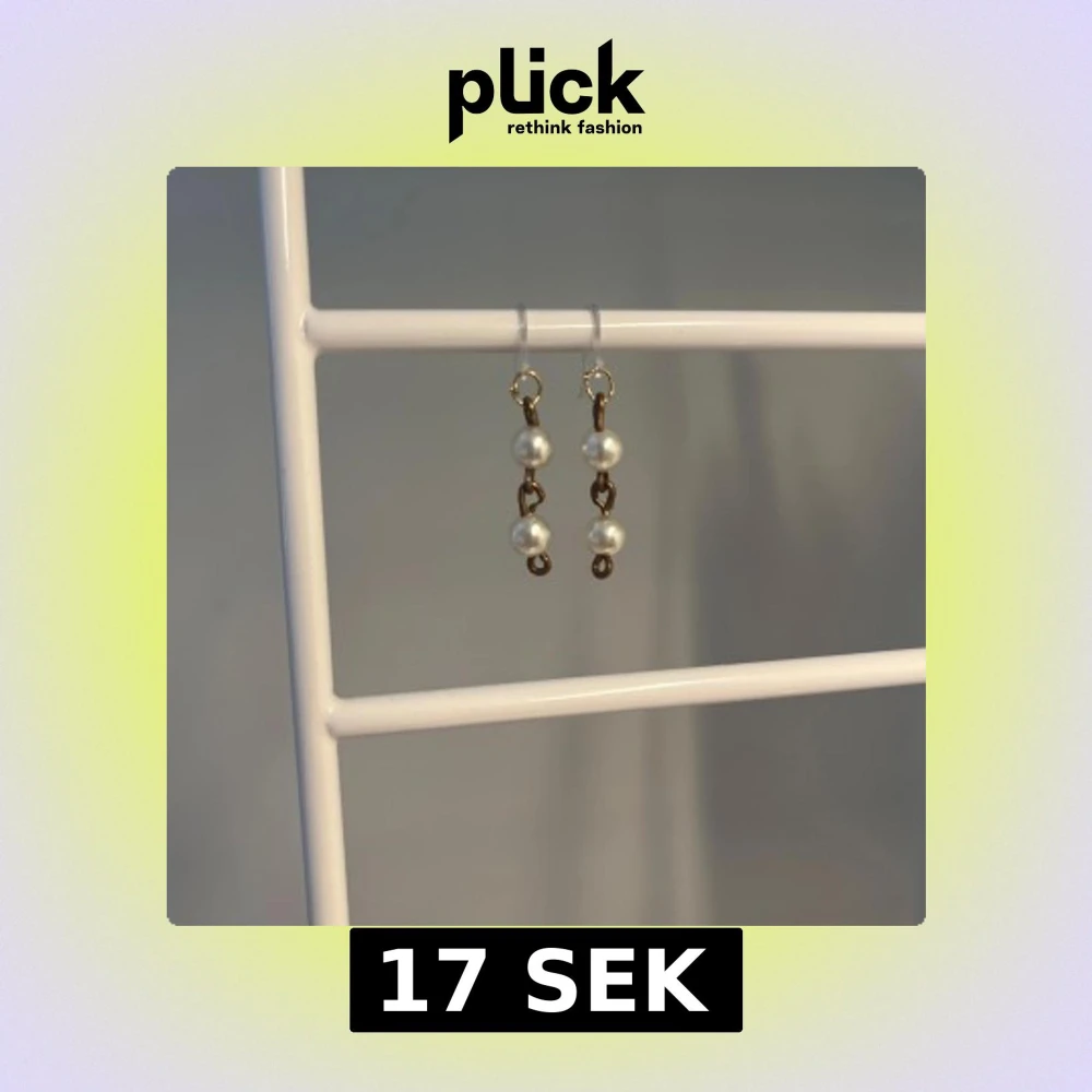 Snygga örhängen med två vita pärlor på varje, uppträdda på en tunn guldig/brons kedja. Perfekta för att ge en elegant touch till din stil. Lätta att bära och passar till många olika looks. De är handgjorda!