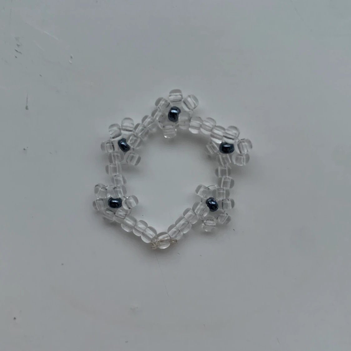Ringen Åsa, handgjord ring i metallic blå och genomskinliga pärlor. Frakten kostar 10kr. Desinfekteras innan vi fraktar. Jag bär stl S/M. Hör av dig om du är intresserad. Kika gärna in våran profil för andra fina smycken😊