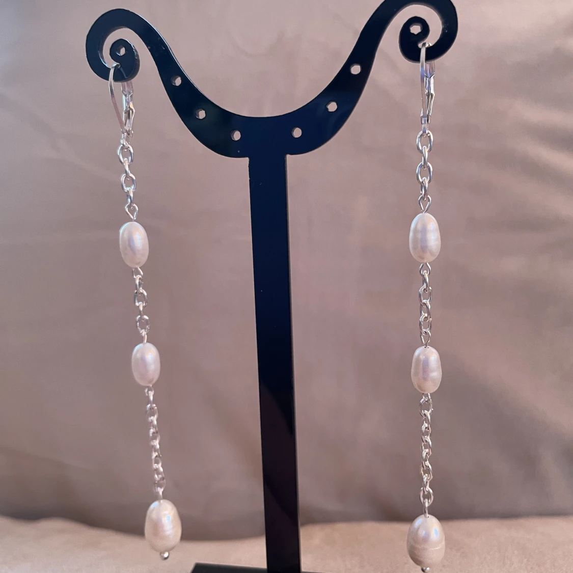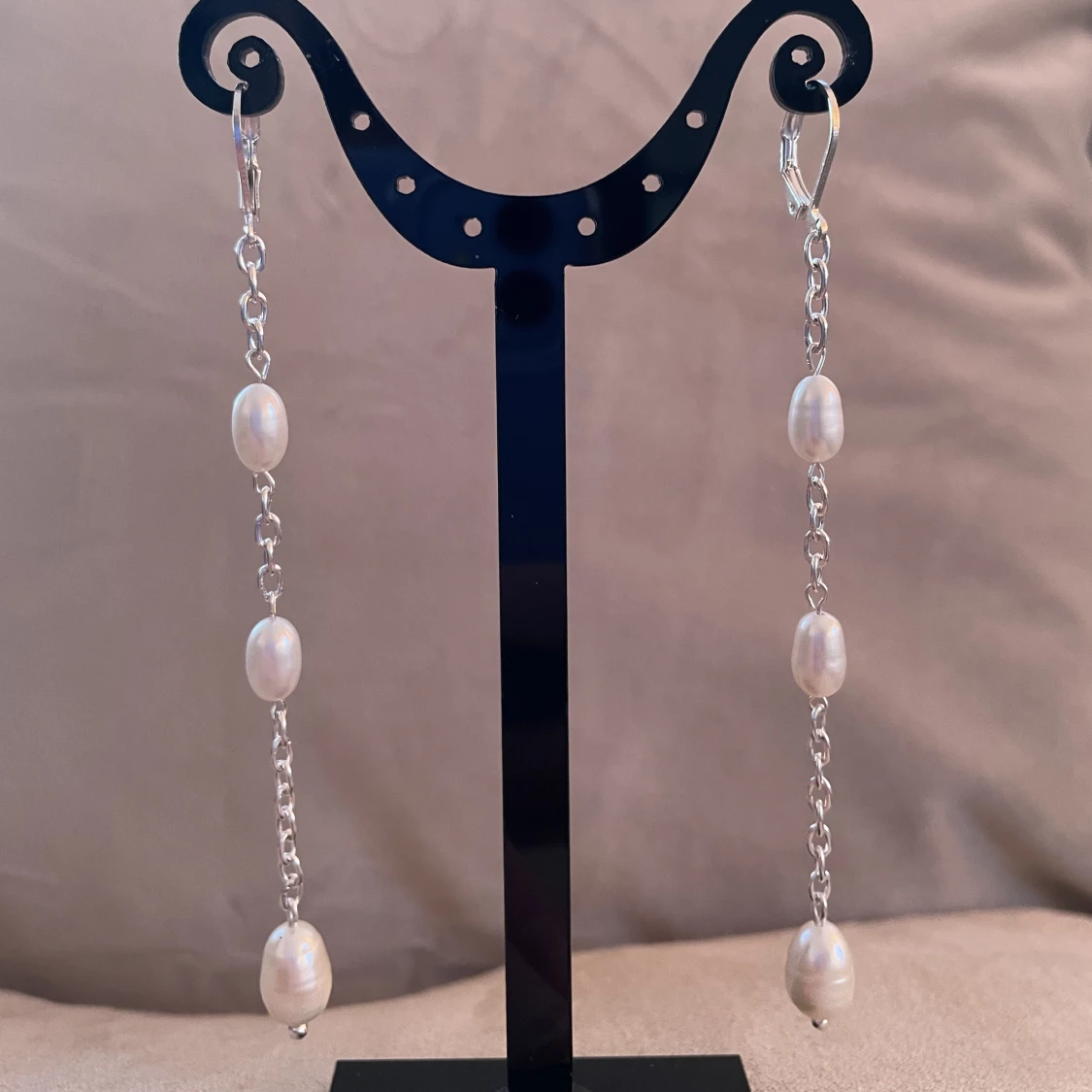 Handgjorda örhängen av sötvattenspärlor och öronkrockar av sterling silver Kontakta för mer info ( bilder, video) Samfraktar Står ej för postens slarv