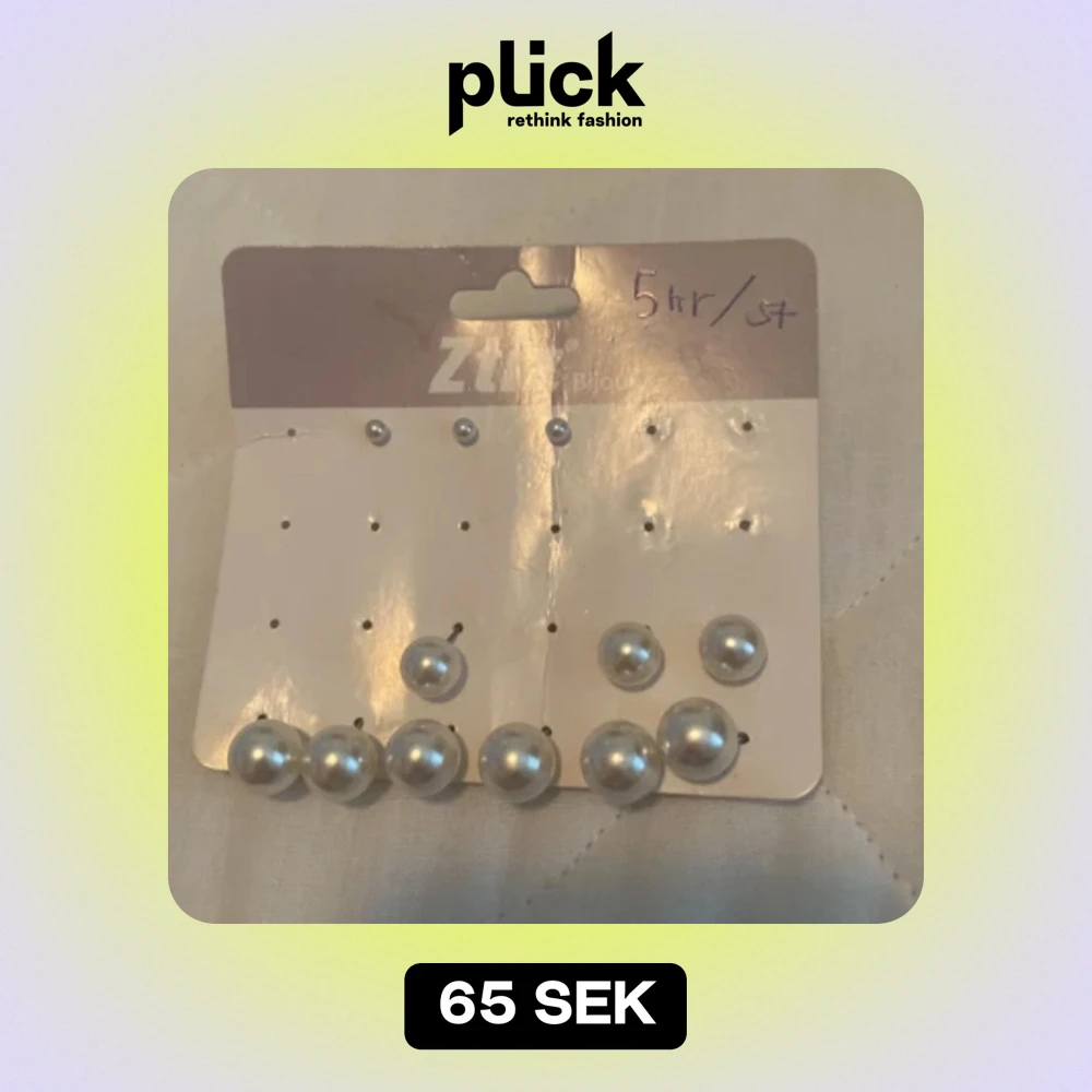 Ett set med pärlörhängen från Zia. Setet innehåller fem par örhängen i olika storlekar, alla med en klassisk pärldesign.