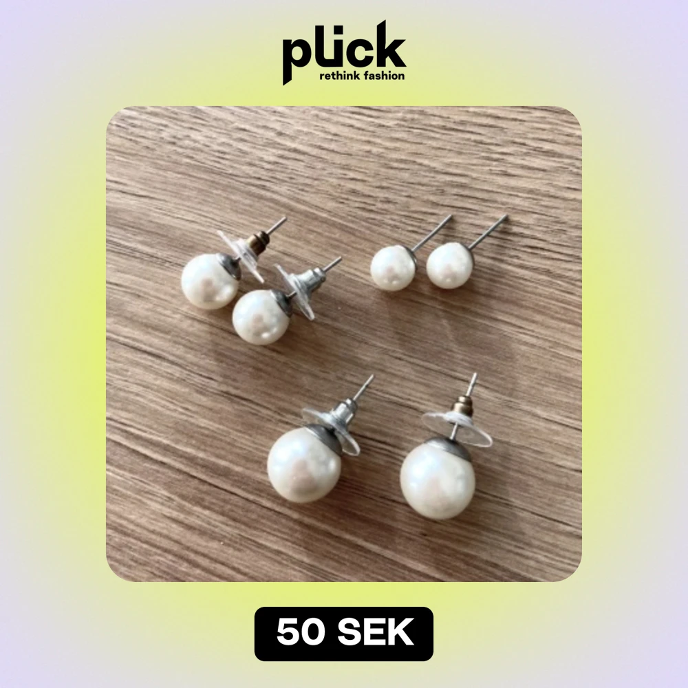 Pärlörhängen i 3 olika storlekar. Fattas 2 st ”pluppar” men i övrigt mycket bra skick! Säljes för 20 kr/st eller 50 kr för alla 🌼