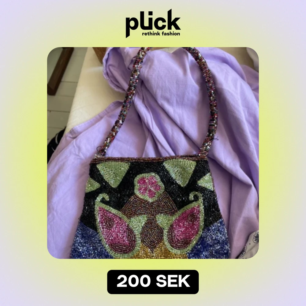 Jättefin pärlväska köpt på en butik i gamla stan. Ena bandet är lite upprivet men de sitter fortfarande fast och man kan vika in de så de inte syns.