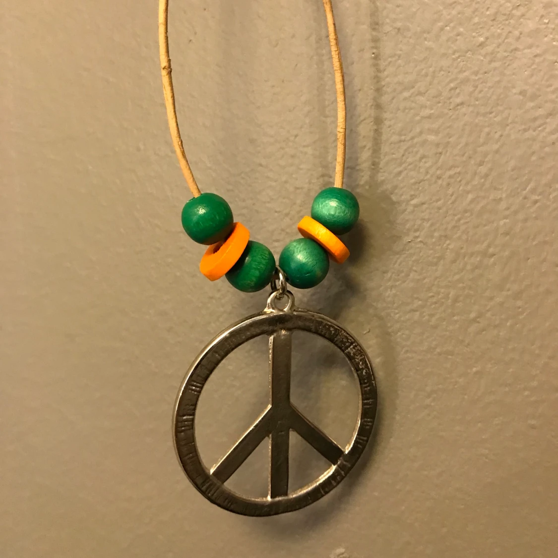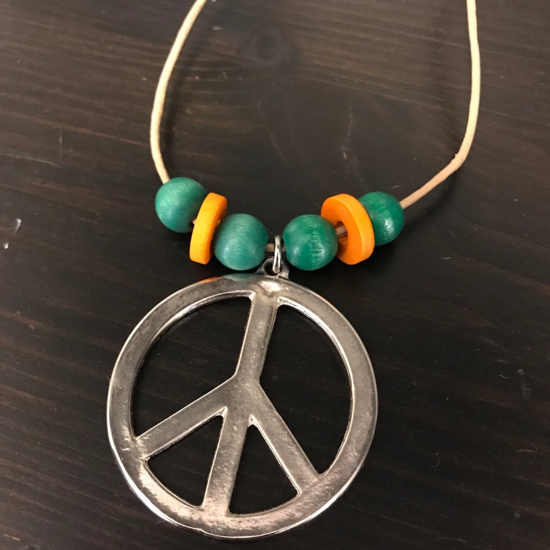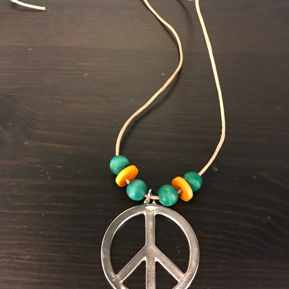 Peace halsband med diameter pÄ 4.4cm, med lÀderrem. Kan Àven skicka med svart lÀderrem eller ett svart snöre. Vill du endast köpa rem/snöre och hÀnge utan pÀrlor och kanske sjÀlv vill pyssla ihop ett sÄ gÄr det ocksÄ bra. Kan skickas eller hÀmtas upp.