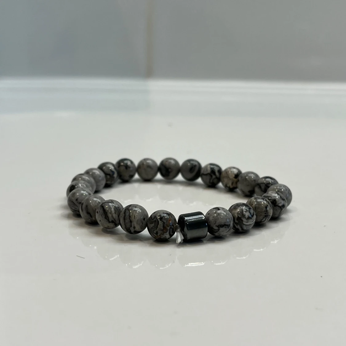 Detta armband heter grey pearl och är av Sten, pärlorna är 8mm. Helt ny skick!! Vid intresse hör gärna av er!!